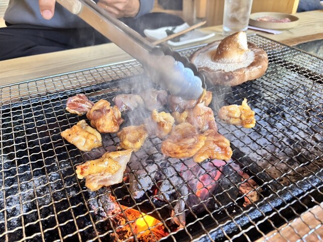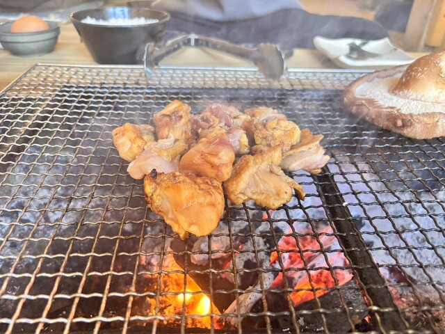 こちらでは、朝しめたての鶏を目炭火で焼いて楽しむことができます。
