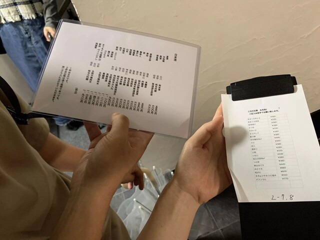 『立喰い寿司 あきら』では、整理券をもらう前にメニュー表が渡され、ネタの注文数を記入し提出すると整理券を受け取ることができる仕組みになっています。
