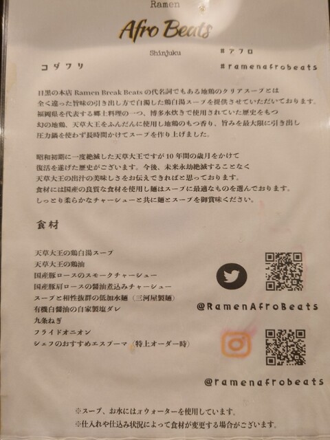 ここは祐天寺にあるRamen Break Beatsのセカンドブランドだそう、本店の淡麗系と違って