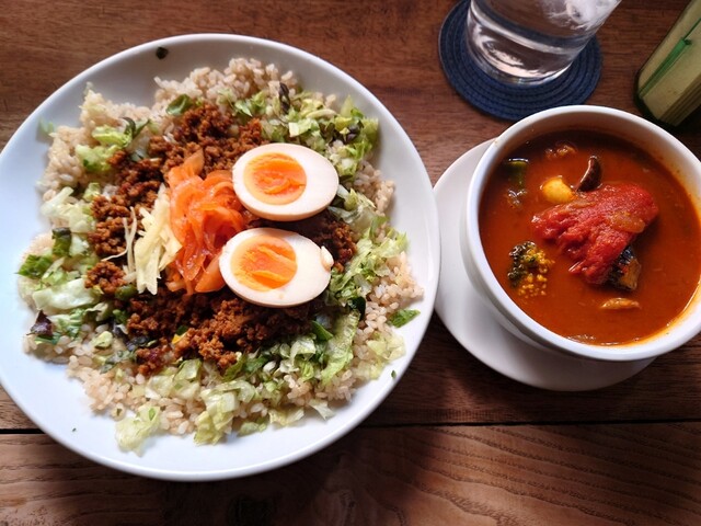 カレーそぼろみたいな感じで食感も十分にあり、海外のお米でしょうか?なんともいえない噛み応え・・・うめ〜〜〜〜!