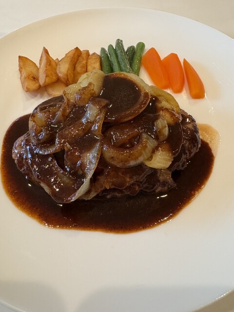 わか風オムライスと同じと思われる最高のデミソースがたっぷりかけられたハンバーグを噛み締めながら、お米を我慢した自分をじんわりと褒めました