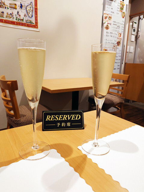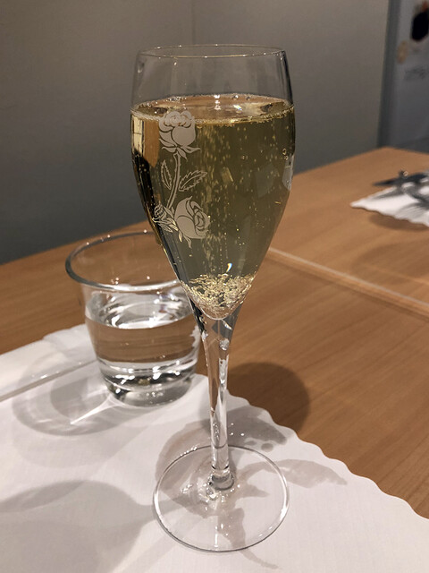 スパークリングワインで静かに乾杯。この後は赤ワインで