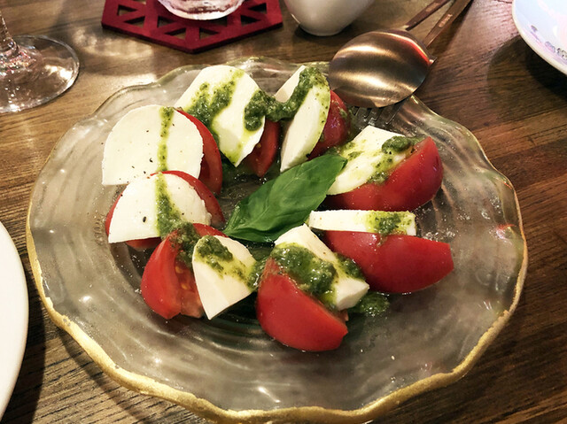 トマトとモッツァレラのカプレーゼ968円。甘いトマトとチーズの風味のバランスが絶妙でした
