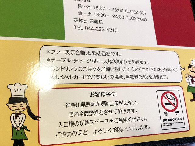 営業時間、テーブル・チャージ330円、クレジットカードの使用についてなど、明朗です