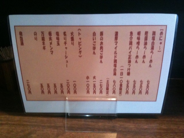 今回は初めての訪問で、定番メニューの鶏塩白湯ラーメンをいただけなかったのが残念でしたが