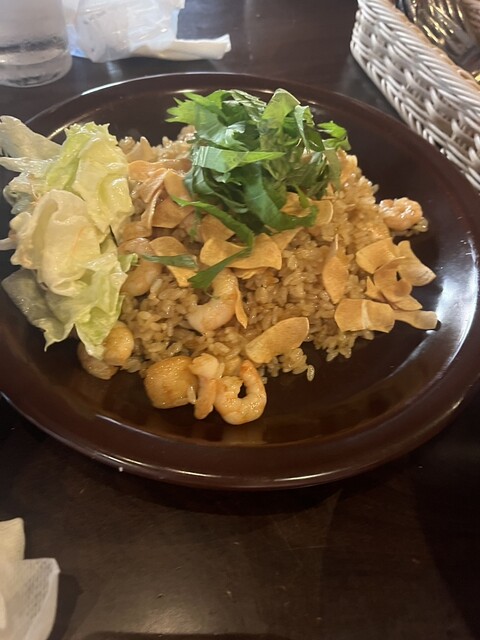 いただいたのは、シーフードサラダ、アンチョビポテト、ビーフサラダ、今日のお魚サクサクフライ、炭火焼きスペアリブ、浜豚のカレー、国産芝海老のガーリックピラフ、そしてデザートのアイス。