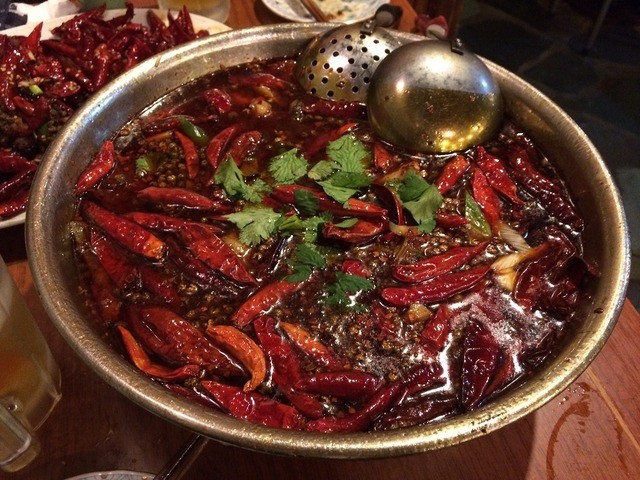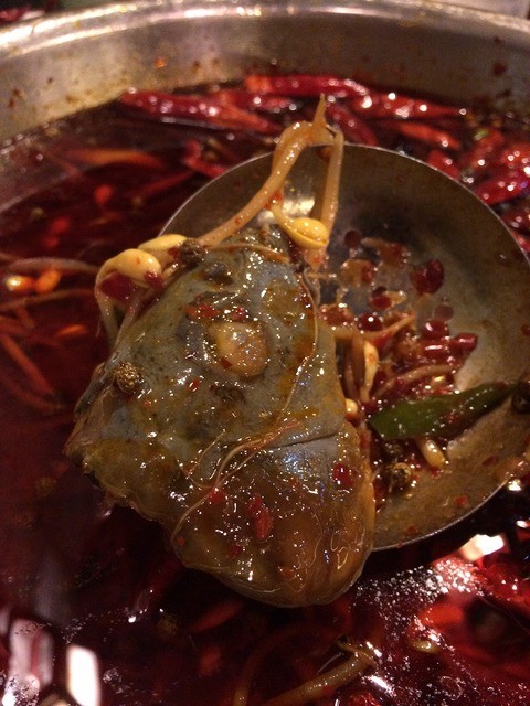 唐辛子スープの中身は、魚です。四川風の煮魚は、ちょっとグロいですが美味しいです。