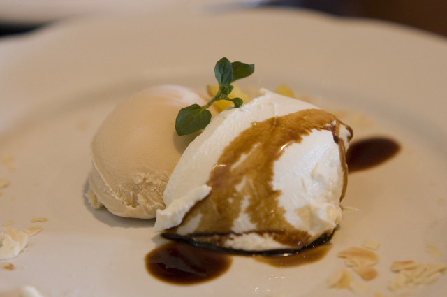セットのデザート(パンナコッタとキャラメルジェラート)