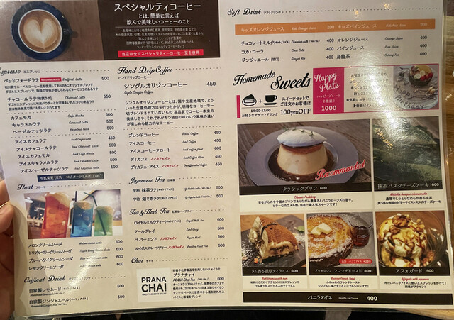 ドリンク。スイーツメニュー