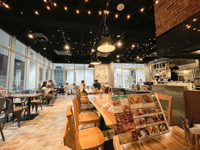 店内はレンガ調ののアメリカン風