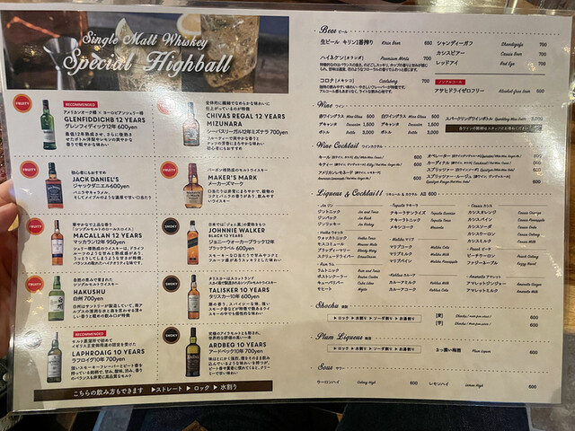 アルコールメニュー