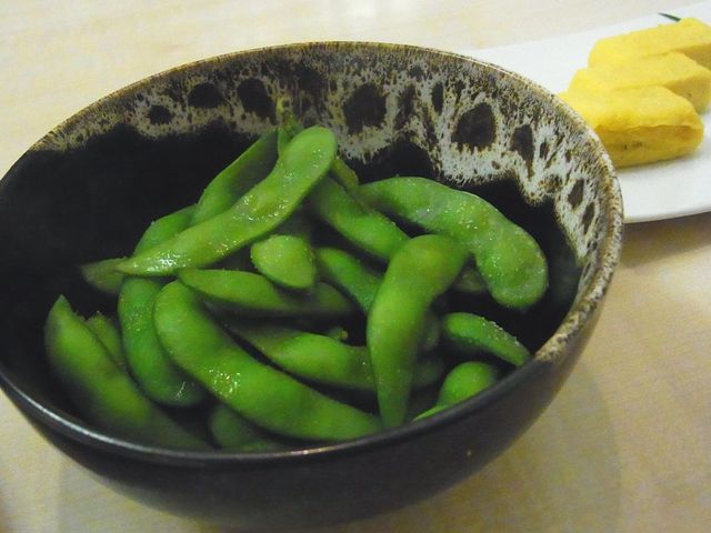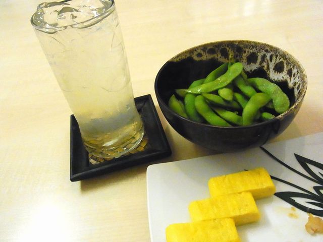 出汁巻きは、日本の普通のレベル 枝豆は茹でたてで熱々でおいしいです