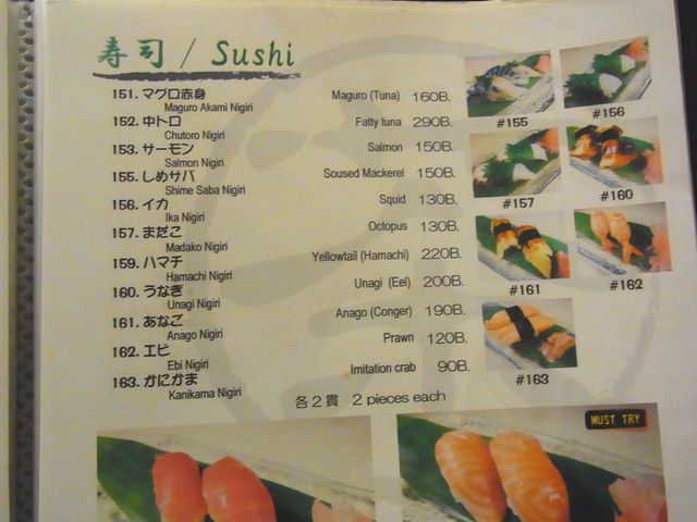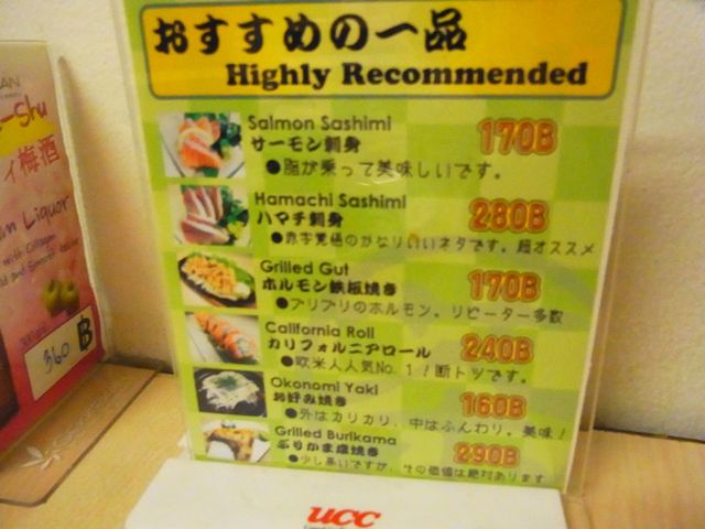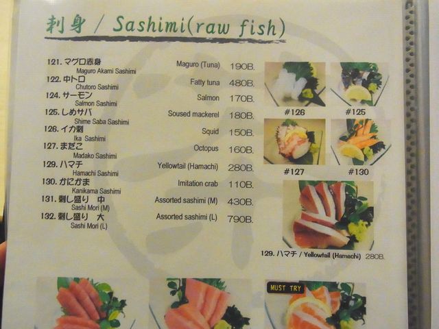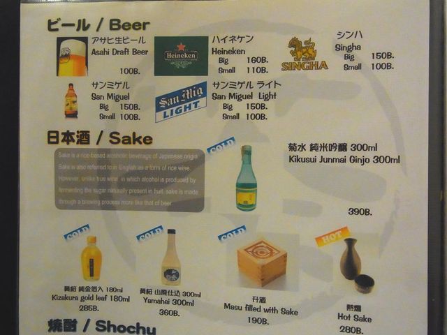これで、合計(税込み)1,228.5バーツ(約3,900円)海外の日本料理屋としては、