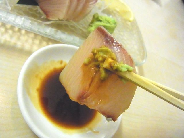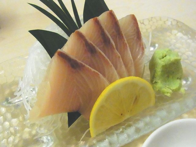 おすすめメニューのハマチ刺し、値段的にはとってもお得なんですが、