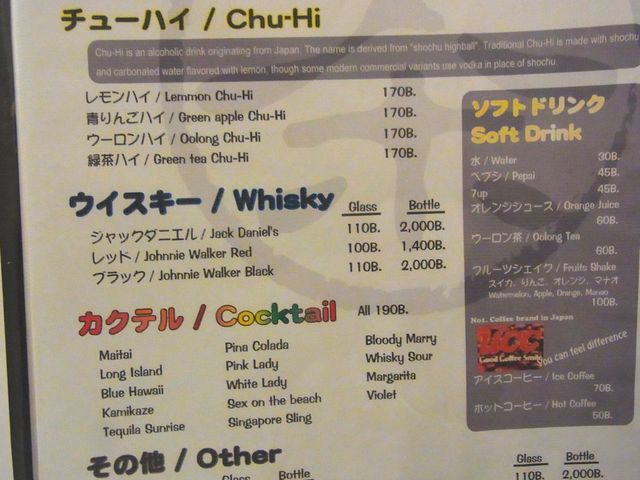レモンチューハイ@170バーツがあったので、それを頼んで、