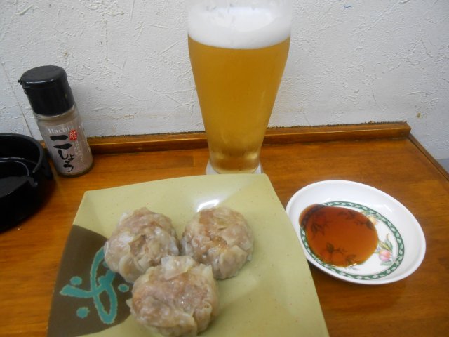 チョイ呑みのつもりだったので、生ビール(小)@180円(たぶん発泡酒)と焼売(3個)@230円を入り口のお姉さんに頼みました。 この人は、福建省の福州の出身だったと思います。 話し相手は、一番奥の厨房に居るお姐さんです。 この人は上海出身で、旦那が台湾人だったと思います。