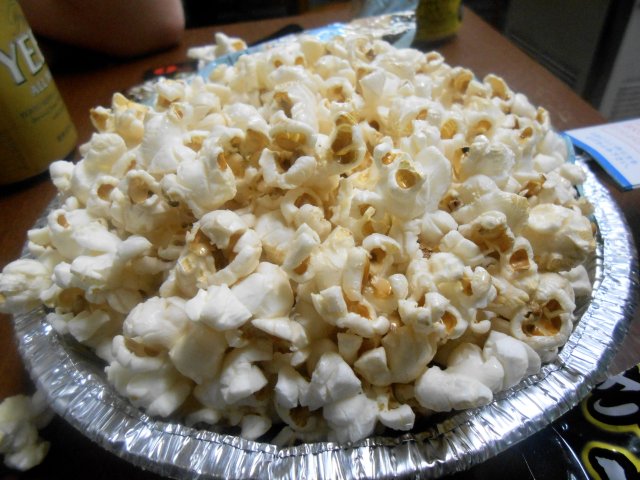 ボク達は、ハイリキ350ml缶、ヱビス350ml缶に角ハイボール350ml缶をもらいました。 みんな角打ちでの勝手がわからずにウロウロしてます。 つまみは、むき枝豆にポップコーンとサバの味噌煮です。 ポップコーンは女将さんに炒ってもらいました。 上手にはじけているでしょ。 ここは、店内がキレイに整理されていて、古いですが、磨きこまれています。 店内に木の風合いがとても良く出ていますね。