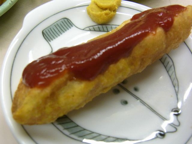 まずは芋焼酎の水割り@280円で乾杯です。「久しぶりですね〜」 早くできるつまみにMixおかき@100円を頼んで、ほかに、田舎煮@90円と串フランク@90円を頼んだと思います。 これは、この前無かった新メニューですね。 やまでらさんの厚揚げ焼き@120円を貰って話が弾みます。 反対隣に座っていた、テレビでよく見るKさんをハンサムにした、Yっさんとも色々と話しましたね。 ここはお客同士が初対面でも直ぐに仲良くなれる店です。
