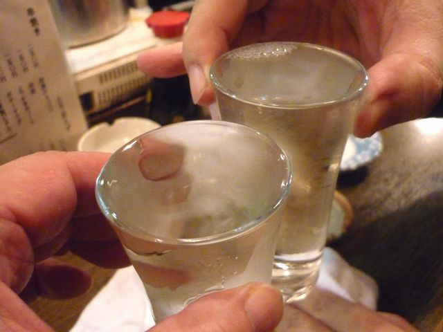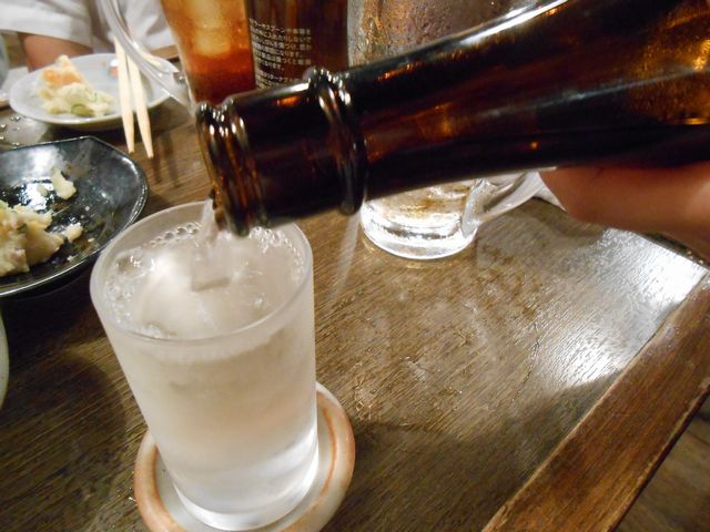 この日は、いつもの呑み歩き仲間のBe~さんと、高田馬場の2度目の探検です。 ザンギ(唐揚げ)立ち呑みを堪能した僕たちは、大雨の中。神田川沿いのこちらのお店へやって来ました。 ここのカウンター席は、立ち呑みでも座りのみでもどちらもOKという店ですが、ボク達は立ち呑み二軒目だったので、酒ケースを利用して作った椅子にちゃっかりと座りました(笑)