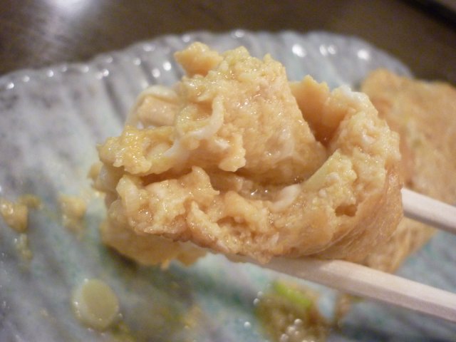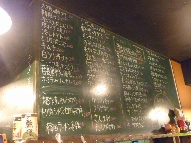 ブツ(新幹線の切符)の受け渡しも無事終了したけど、もう少し呑んで行きましょう(笑) ナカx2を追加して、日本酒(豪快)@380円も頼みましょう。お酒は、中国遼寧省延吉朝鮮族自治県出身の可愛いお嬢さんがお世話をしてくれます。 つまみは、納豆入り油揚げ@200円とポテサラ@200円にメンチカツ@280円を追加で頼みました。 酒もつまみも安くて旨いこの店ですが、一つだけ問題点があります。 店内の、大きな黒板にフードメニューが書かれているのですが、字が小さくてボク達には読みにくいことです(汗)