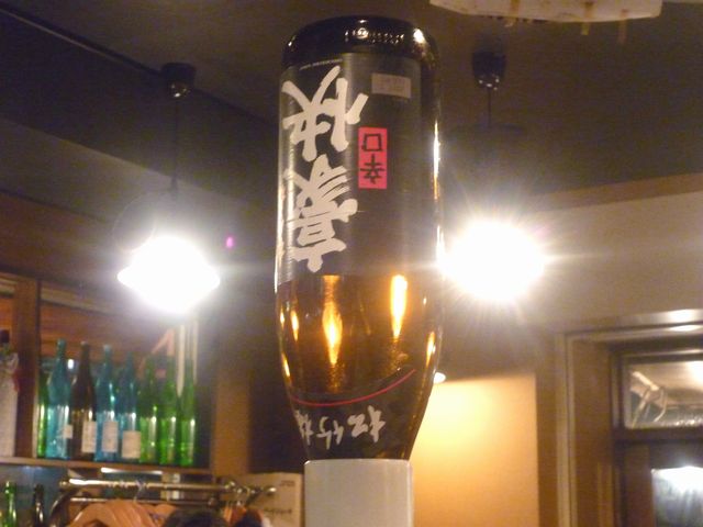 この日は、久しぶりに高田の馬場のパトロールです。この方の食べログ記事を読んで興味を持ったこの店を覗いてみました。 一見するとビールケースを組んだ椅子に安っぽいカウンターで普通の安居酒屋みたいです。 まずは、 冷酒(松竹梅 豪快)@380円とポテサラ@250円を頼みました。冷酒がナミナミと注がれて嬉しいです。 コクがあってさっぱり系のお酒ですね。 ポテサラは量が少ないですが、いもの形が残っていて、マヨネーズが薄目で旨いです。店内も色んな地酒が飾って有るし、つまみも黒板にたくさん書いてあります。
