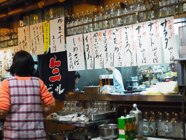 店内は、左側がコの字型のカウンターで、右側に8人程度が座れるテーブルが二卓あります。 合計で30人位のキャパでしょうか? こちらの名物店員「やっちゃん」に愛想よく迎えられ、ひとまずホッとしました。