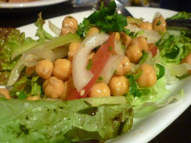 この日の前菜は、マサラドーサ@1,370円からです。 これはインド風クレープといっても良いくらいで、丸く薄くのばしたパリパリのパンケーキで、香辛料で味付けしたジャガイモを包みます。 インドのみそ汁にあたるサンバルカレーをかけて、ココナツチャツネとマンゴーチャツネを付けて頂きます。 一見ドーナツのような、ワダ@740円は豆の粉をドーナツ状にして揚げたもので、材料が豆だけに意地になります(笑)。 サラダは、ひよこ豆と玉ねぎのサラダ@630円です。 昔インド人のお母さんに作り方を教えて貰ってから家族中ひよこ豆が大好きです。 主食のようで、前菜に出てくるのが、チーズクルチャ@740円で、自家製チーズが熱々のパンの中でトロトロになった物が出てきます。 これも子供が大好きです。 だいたいこのあたりは定番でいつも頼んでます。