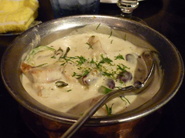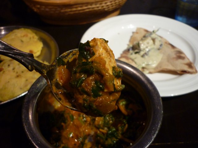 グレービーものとしては、ラムコルママドゥライ風@1,470円、サグパニール@1,260円と海老と魚のシャクティマサラ@1,470円を頼みました。 ナン@300円x2とバスマティライス@320円x2も忘れずに頼みましょう。 それと、メニューにありませんが、ライタを貰いましょう。 ライタをバスマティライスにかけて食べると美味しいんですよ。 ドリンクは、マンゴラッシー@530円x3ですね。 あれ、カレーの雰囲気が変わりました。 シェフが変わったんでしょうか? 味はちょっと軽めになりましたね。 今流行の味付けなんでしょうか?