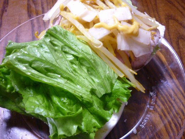 そのまん頭を電子レンジで温めて二つに切った物に、野菜と、自家製チャーシューを挟んで頂きます。もうこれ最高ですね。 チャーシューだけでなく、マトンとタマネギの胡椒炒めなどを挟んでも旨いですよ。