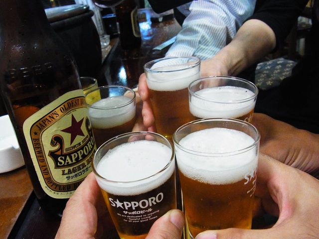 ドリンクは最初は赤星で、乾杯しましょう