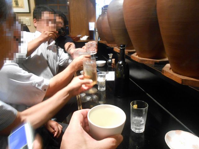 ツマミは、何にしようかと思いましたが、いわし明太子焼きと冷奴がお通し@600円で出るということで、それだけにしました。 皆さん、話が弾んでますね。 良いお酒なので、絶対値の値段は高いですが、同じ物を他店と比べると数割安い価格で出ているとおもいますよ。