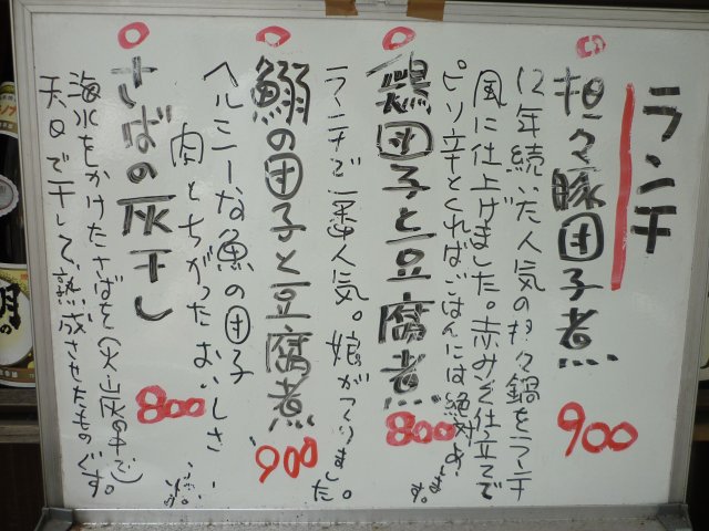 運良く奥の4人かけテーブルが空いていたので、滑り込みです。 今日は娘さん夫婦は休みで、大将だけの営業みたいです。 地酒リストを見た瞬間にROQさんの目が輝きました。ボクのような安酒のみには良く分からない、専門用語(笑)で、大将と会話してます。 たぶん、だいぼんさんとボクは、黒龍大吟醸@900円でROQさんは、富士山@800円を選んだと思います。(記憶がちょっと定かではないです)。 900円とか800円は、普段なら3合は呑める値段ですが(爆)、やっぱり良い地酒は旨いです。 つまみは、だだちゃ豆に、いわしの明太焼@380円(安い!)と9点盛り@2,000円です。 写真でみれば分かりますが、大ぶりの鰯の腹に明太子を詰めて焼いたこのつまみは、普通の店では倍以上するかと思います。 9点盛りも酒のつまみがちょっとずつ入っていて、呑兵衛の心をくすぐりますね。 日曜日には、この9点盛りが1,000円だそうです。 皆さんだいぶできあがってきたみたいですね。 合計7,700円でした。 また来たい店ですね。