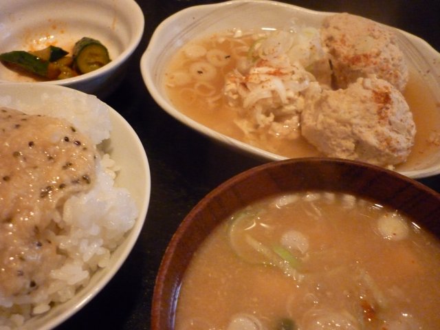 席について、それぞれお酒を注文です。 正式な名前が書けないですが、分かる範囲で書くと。 べっぴん@900円、ろかせず@750円、一番橋(焼酎)@850円、さつま茶@620円x2、ホッピー@500円x2、藤の露古@850円です。 ここでホッピーを頼む人は筋金入りですね(爆) 和らぎ水も渋いボトル入りで、とてもスムースに飲める水です。