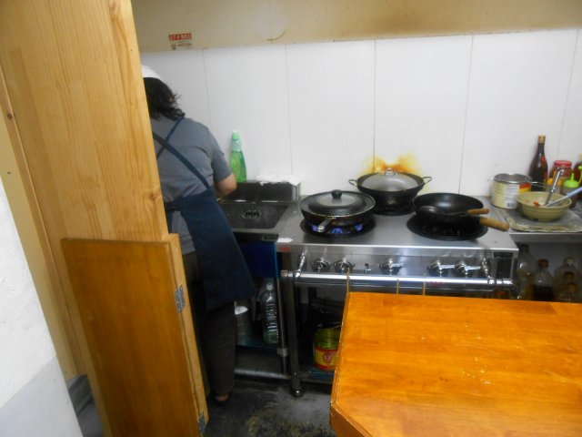 チョイ呑みのつもりだったので、生ビール(小)@180円(たぶん発泡酒)と焼売(3個)@230円を入り口のお姉さんに頼みました。 この人は、福建省の福州の出身だったと思います。 話し相手は、一番奥の厨房に居るお姐さんです。 この人は上海出身で、旦那が台湾人だったと思います。