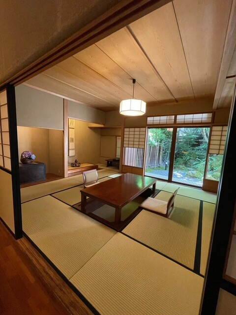 古民家を移築した建物で1階にリビングと掘り炬燵が