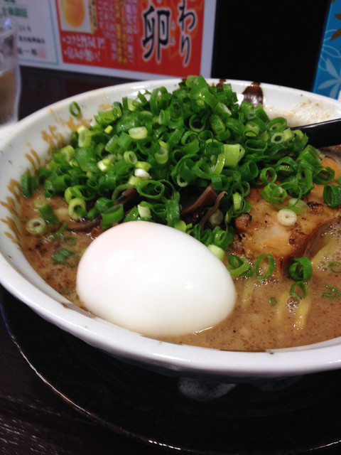 と、いうことで最初は「白豚骨」……ではなく、「黒豚骨」に九条ネギトッピングをオーダー。
