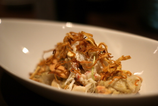たらば蟹にカニ味噌の風味がふっと広がって、イタヤ貝の歯ごたえに、セロリアクのほのかな苦みがめっちゃ合っています。