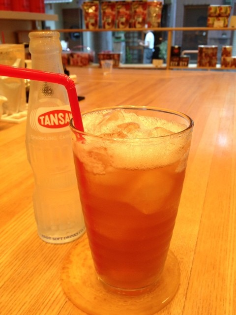 食後に、ちょうど紅茶を楽しみに来られたお客さんがティーソーダを注文したのですが、それまでも提供していただいて、結局ランチにアイスが2杯、ホットが2杯、ティーソーダが1杯。
