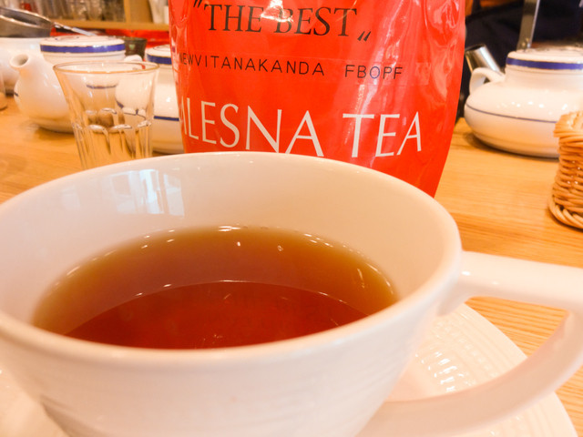 深紅のパッケージが特徴的なセイロンティー「MlesnaTea(ムレスナティー)」のフレーバーティーを提供するティールーム。