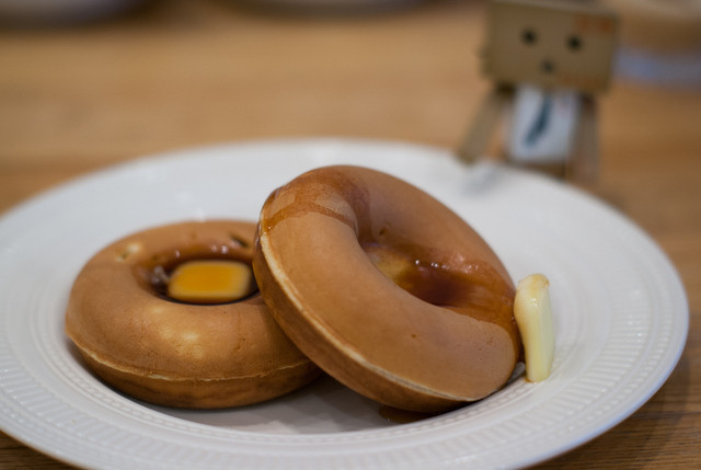 ドーナツ状に焼いたパンケーキですが、真ん中は穴になってなくて薄いカリッとした生地になっています。