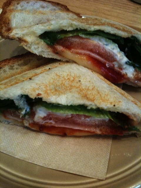 BLE、日替わりもあるのですが、今日は狙っていた「紅茶豚」のホットサンドを。アールグレイで炊いた豚なんて、それだけで紅茶好きならうずうずしてきませんか?