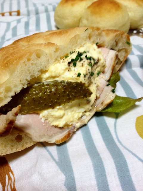 パニーノには……オレガノがわずかに香り、酸味のしっかりとしたピクルスと粒マスタードがあっさりとしたフィリングと良く合っています。