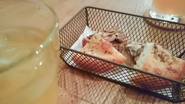 サングリアで乾杯して、一緒に提供していただいたブルスケッタに手を伸ばします。