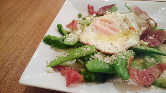 ◆温野菜と生ハムの半熟卵のせ(¥800)