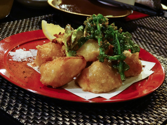 サクッとした衣の中に、ほっこり、ねっとりとした海老芋の甘味。味も素晴らしいのですが、この料理は何よりも口の中で”感じる”料理。食感に訴える素敵な料理ですね。