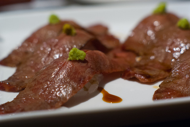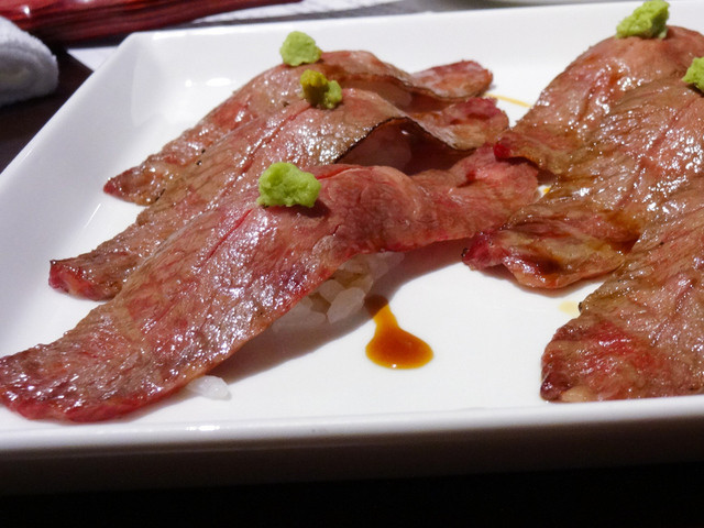 ご飯物として炙り寿司を。部位は綺麗なサシが入るミスジと呼ばれる部位。