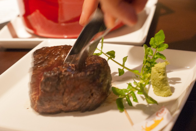 サーロインで十分に満足していたんですが、極厚のヘレが提供された途端、目がそちらに吸い込まれます。