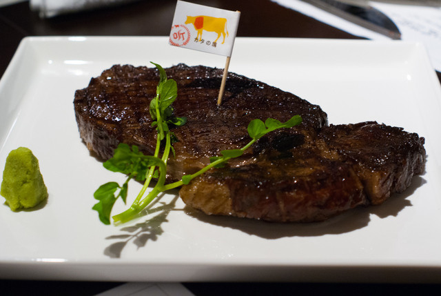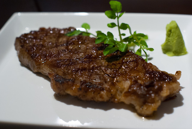 焼き具合は「ブラックアンドブルー」がベストだとお店の方が言います。外は焦げるほど、中は柔らかなレアな状態が熟成肉の最適なんだとのこと。熟成香と言われる香りが穏やかに感じられるお肉をたっぷり楽しめます。