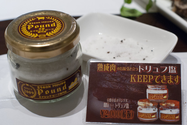 こちらもそのままで食べるのがベストらしいのですが、ちょっと香りを加えるならばと出していただいたのがトリュフ塩。香りが強いのでこれこそほんの少しだけ振る程度で。
