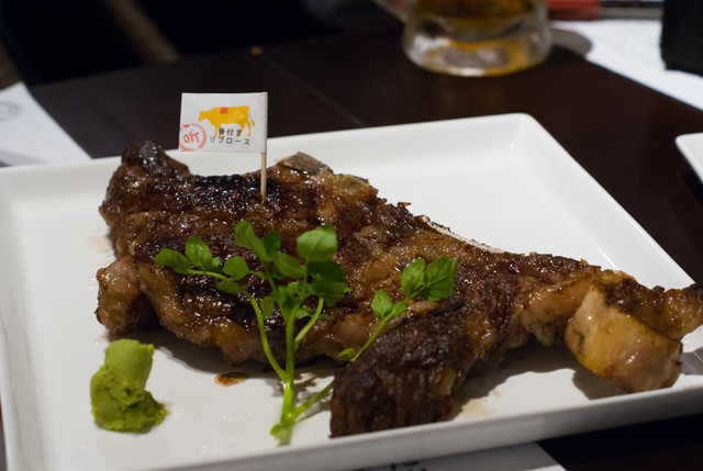 まずは骨つきのリブロースから。